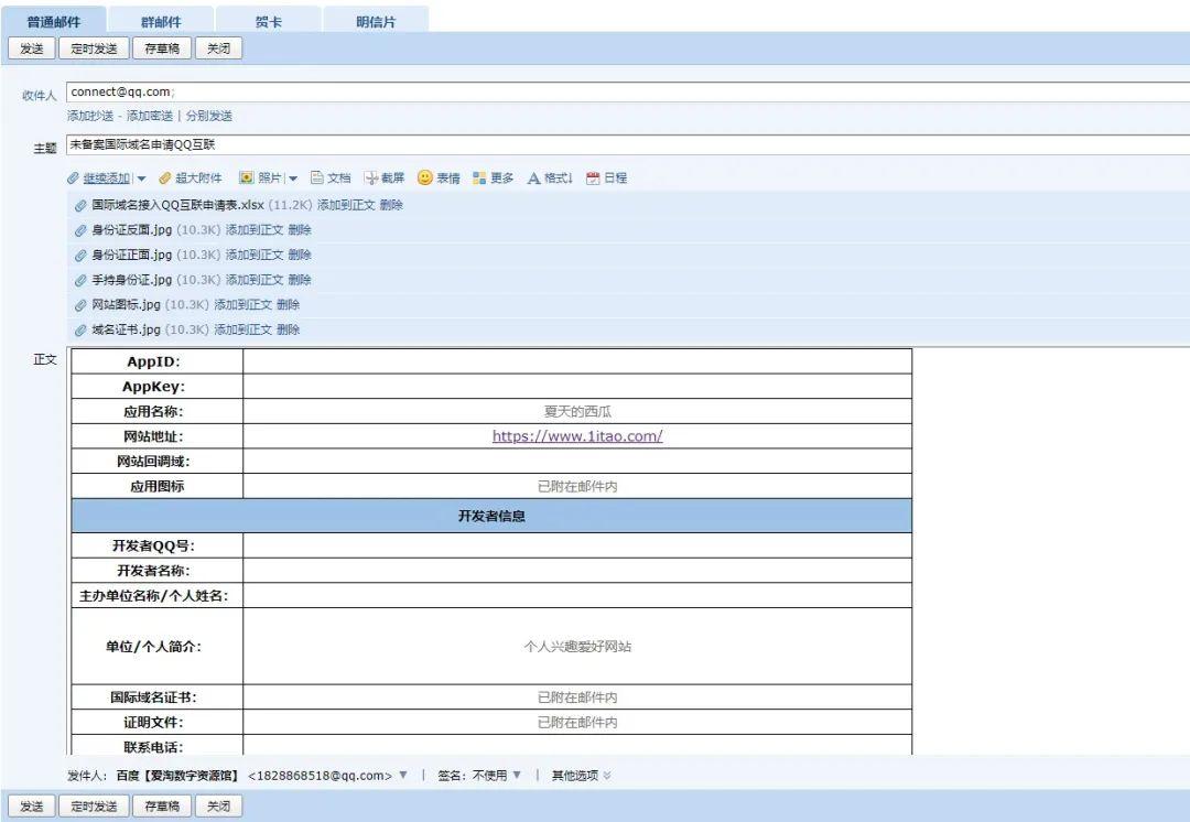 需要向QQ互联发送的资料有以下这些: